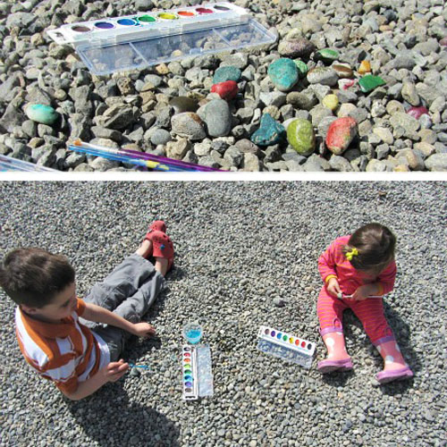 Якщо ви відпочиваєте на гальковому пляжі, то можна прихопити з собою акварельні фарби і нехай діти розфарбовують камінчики. А фарбу потім змиє першим дощем.