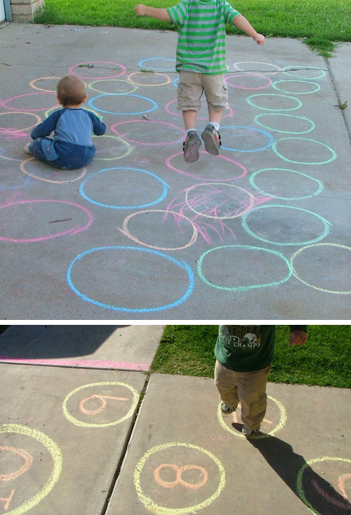 я б ще додала одну чудову розважалку-малювалку, яку вигадали мої діти: наводите відерце крейди (білило - крейду, але не вапно!) й даєте щітку (якими колись бабусі білили стіни або дерева) - хай собі малюють де хочуть. мої малювали собі навіть гольфи й пальчата крім доріг, квітів та дерев у дворі