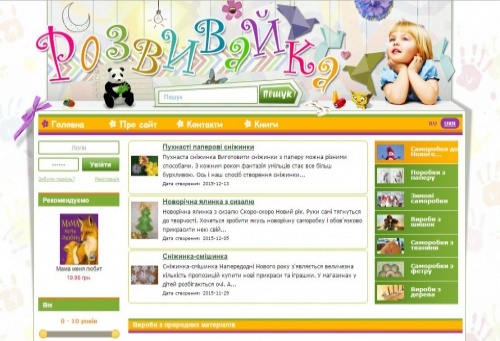 «Розвивайка» - сайт для творчих і креативних діток та їх батьків, пропонуються різні ідеї та варіанти занять прикладною творчістю з дитиною: майстер класи за декількома напрямами  - навички, що розвиваються у процесі занять, різні виробні матеріали, календарні свята.