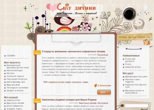 «Світ дитини» – сайт, створений логопедом за фахом, яка пише вірші, чистомовки, розробляє цікаві завдання для малят. На сайті зібрано велику колекцію матеріалів для діток:  ігри, кросворди, розваги, гуморески, жарти, дитячі забавлянки, приказки та прислів'я, українські пісні та вірші, художню і навчальну літературу.