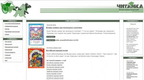 «Читанка» - дитяча публічна онлайн-бібліотека, у якій зібрано книги українською мовою, які вже не можна купити у книжкових крамницях. Книги можна завантажити у різних форматах.