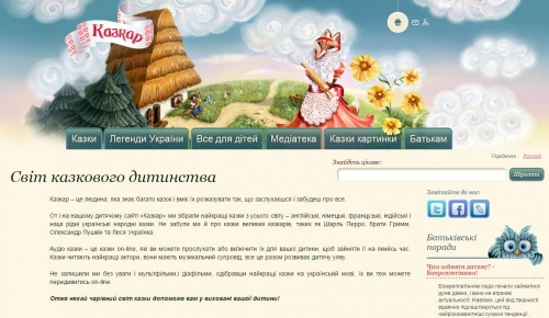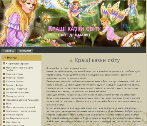 «Кращі казки світу» – гарно ілюстрований сайт для малят та їхніх батьків, який містить улюблені казки з усього світу українською мовою.