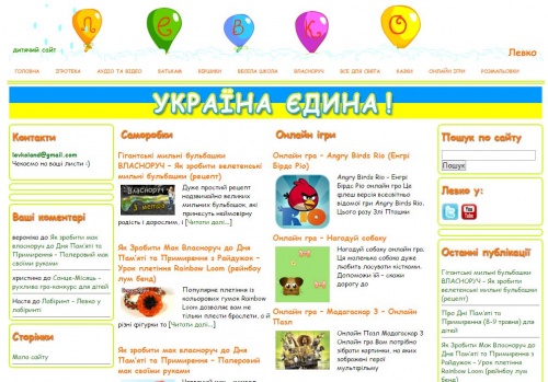 «Левко» - дитячий сайт, що пропонує багатий вибір дитячих ігор, лічилок, загадок, віршів, казок, аудіо та відео матеріалів, поради до різноманітних саморобок, розмальовки, найпростіші кулінарні рецепти для малечі та сценарії дитячих свят.