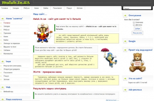«Малюк» - розвиваючий сайт для малечі та батьків: велика кількість ребусів, загадок, малюванням, казок, переказів та легенд.