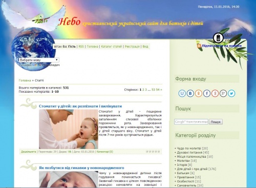 «Небо» - християнський український сайт для батьків і дітей з великою колекцією мультфільмів українською мовою, які можна дивитись он-лайн або завантажити.