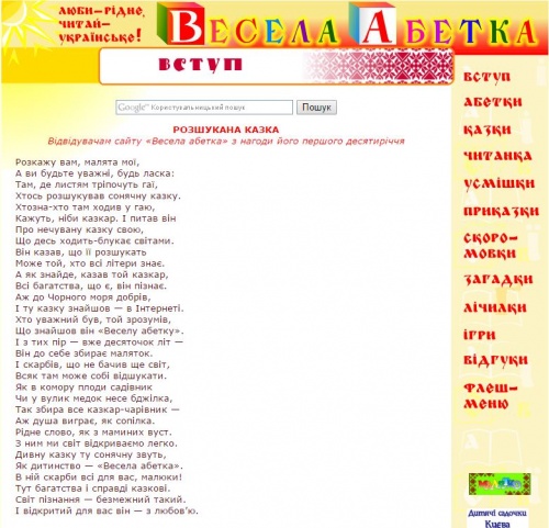 «Весела абетка» - сайт для дітей, де можна знайти абетки, казки, лічилки, скоромовки, загадки, прислів`я.