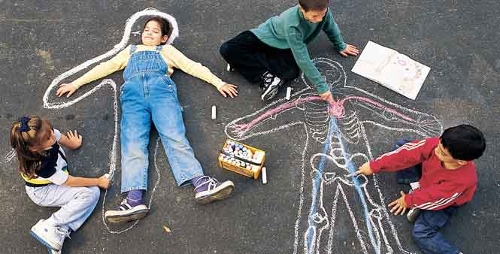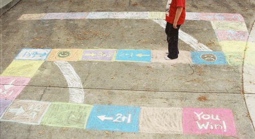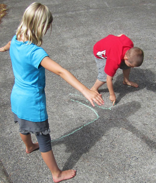 Підкажіть дитині, що можна обвести свою тінь, і на асфальті залишиться її маленький двійник, якого теж можна розфарбувати. Можна обводити тінь з однієї точки, але в різний час дня і дивитися, як вона переміщується. Ще дуже цікаво обводити тіні дерев, паркану, велосипеда і т.п.