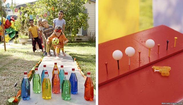 Наповніть водою пластикові пляшки, додайте трохи барвника і зіграйте в боулінг! А якщо ще всередину покласти світні палички, то можна грати в темряві!