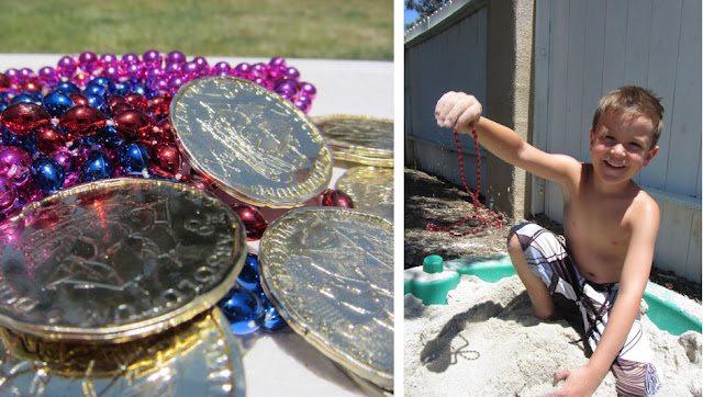 Просто додайте в пісок якісь предмети, які буде цікаво там шукати - намиста, іноземні монети, красиві камінчики, скляні кульки і т.п. Дітям можна видати список того, що треба там знайти.