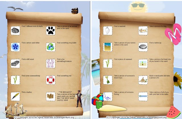 Перебуваючи на морі, можна погратись на пляжі у пошук скарбів. Роздрукуйте або зробіть самі список того, що можна буде там знайти (виріжте картинки з журналів або використовуйте наклейки). Діти з задоволенням займуться таким збиранням.