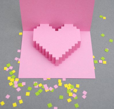 Також прикольно буде виготовити піксельне конфетті і насипати його всередину валентинки.