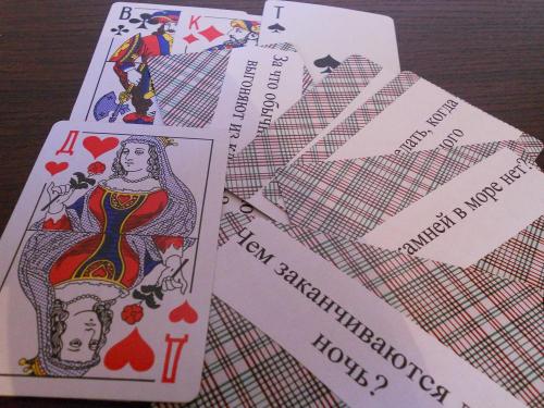 Загадки от Белого Кролика (были распечатаны и наклеены на игральные карты):