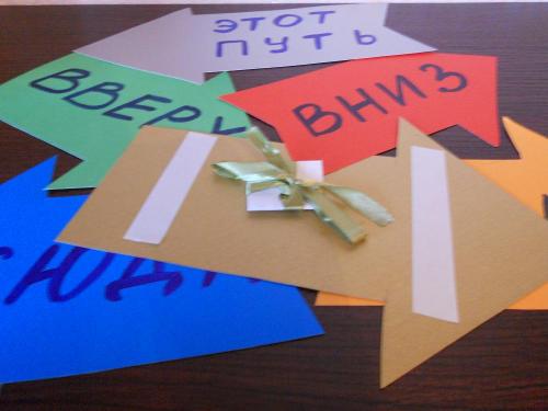 Дерево направлений в суматохе забыла сфотографировать, но на дереве были надутые шарики с заданиями и стрелки направления (если на стрелке было написано "Вверх", то она указывала вниз и т.д.).