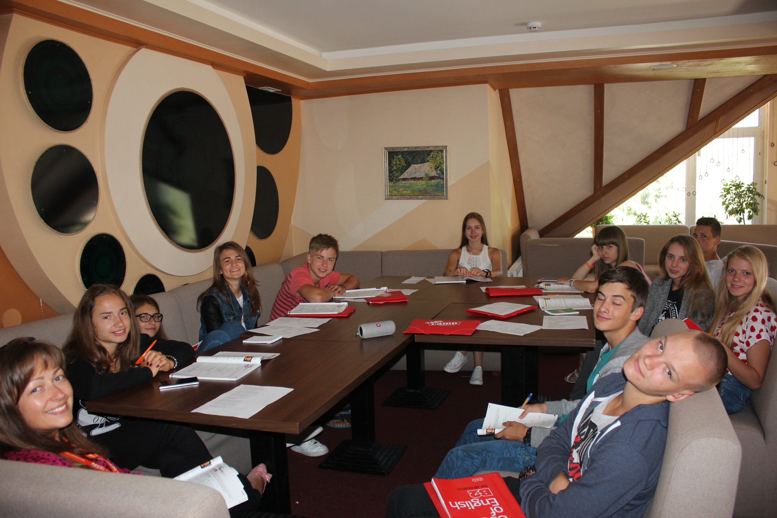 Розмовна мова у таборі тільки англійська! Всі без виключення жителі мовного табору спілкуються між собою лише англійською мовою. З дня заселення у табір і до дня виїзду Ваша дитина житиме у повністю англомовному середовищі. Зокрема 100% англомовний режим буде під час занять, обіду, розваг та ігор.
