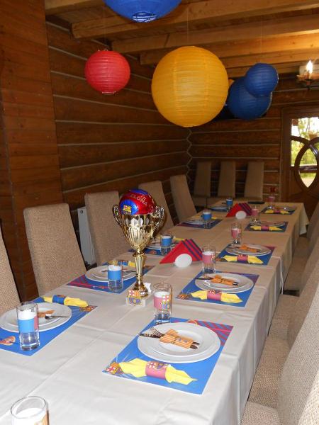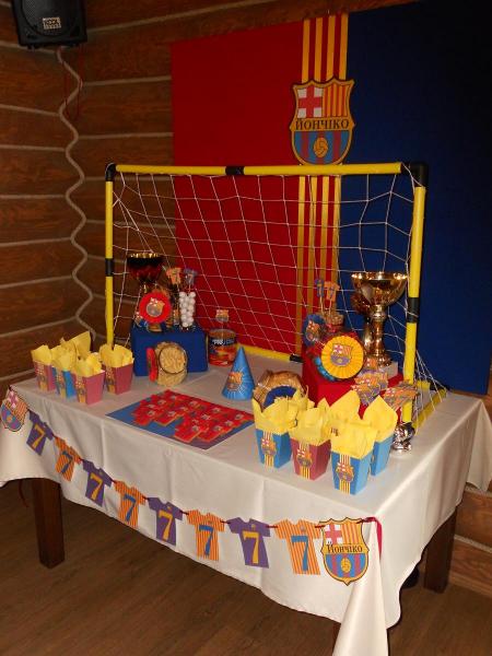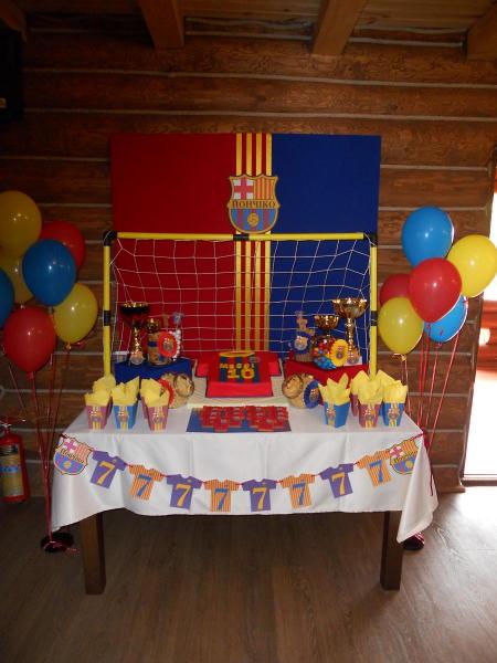Кенди-бар и оформление зала к футбольному празднику малеького именинника, который есть болельщиком футбольного клуба "Барселона"