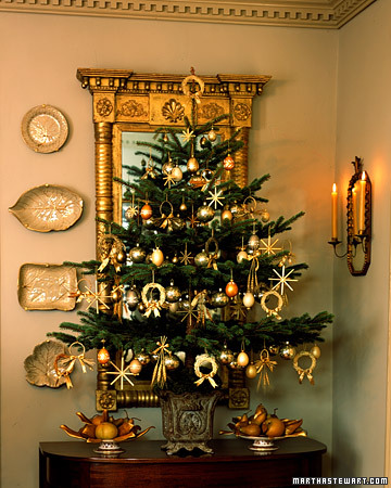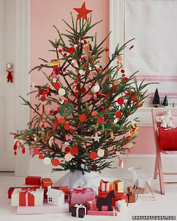 На фото зліва - райська ялинка, прикрашена фігурками янголів (які можна виготовити з білого паперу) та зірками, обплетеними кольоровими атласними стрічками.