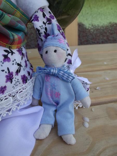 Идея в том, Мама-Тильда ребеночка кормит и носит в слинге. У моей Тильды есть даже настоящая кормительная одежда:) А еще открою один секрет - у Мамы-Тильды будут погодки, то есть она ждет еще одного ребеночка вскоре)))