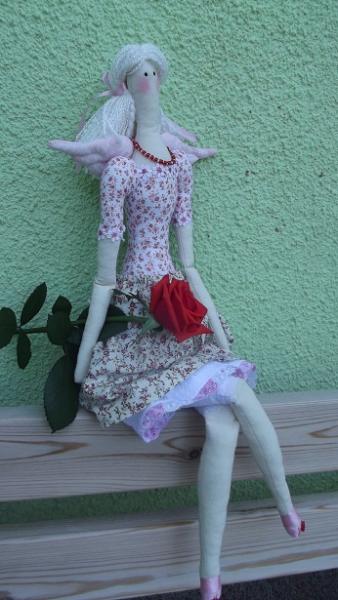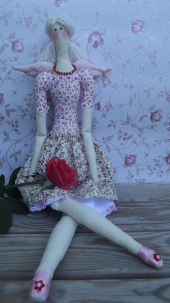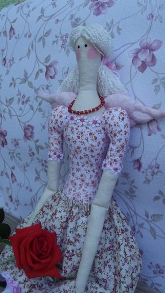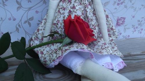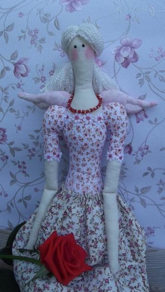 Рост куколки 61 см, материалы - бязь, хлопок, кружево, бисер. Наполнитель - холлофайбер.