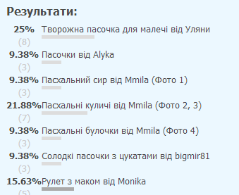 2 місце - Mmila за фото та рецепт пасхальних куличів. Приз - чудовий тортик від Уляни.