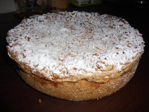 Это базовый рецепт. Я просто в тесто добавила еще пол стакана миндальной муки. Получился миндальный пирог. И яблоки я не терла, а резала на небольшие кусочки. Не любят мои яблоки в кашу, предпочитают чтоб были кусочки. Пирог просто таял во рту