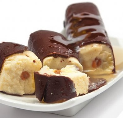 Крок 4: Охолоджені сирки облити глазур'ю і поставити у холодильник, поки не застигне шоколад. Страву можна прикрасити дольками апельсинів, полуницею або обсипати сирки «снігом» — цукровою пудрою.
