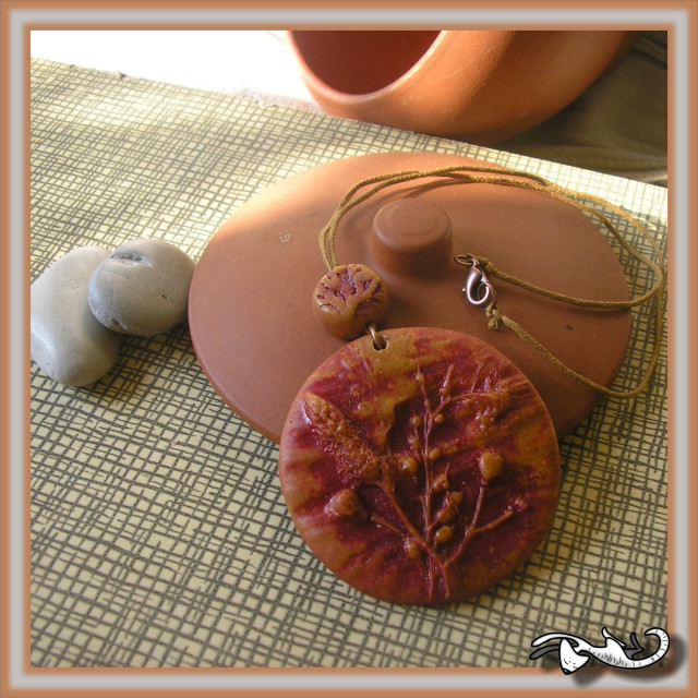 Материалы: полимерная глина, медная фурнитура, вощеный шнур. Тонировка краской.