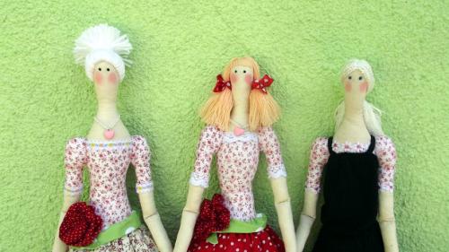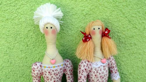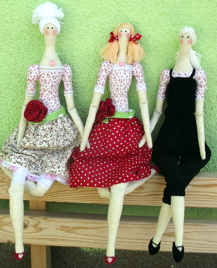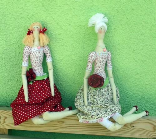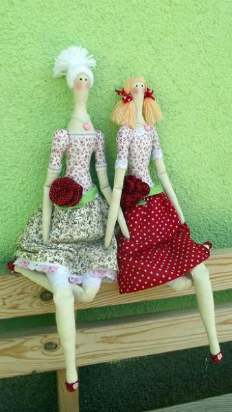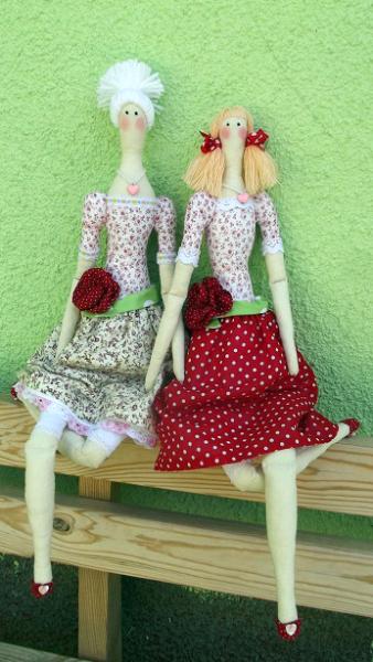Рост девушек - 61 см. Материалы - хлопок, бязь, кружево, декоративная тесьма и ленты, бусины, кулон. Наполнитель - холлофайбер.