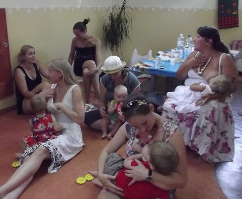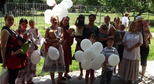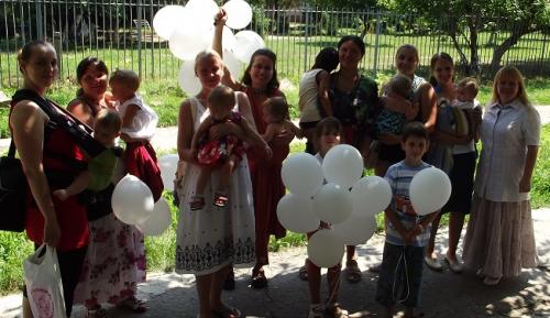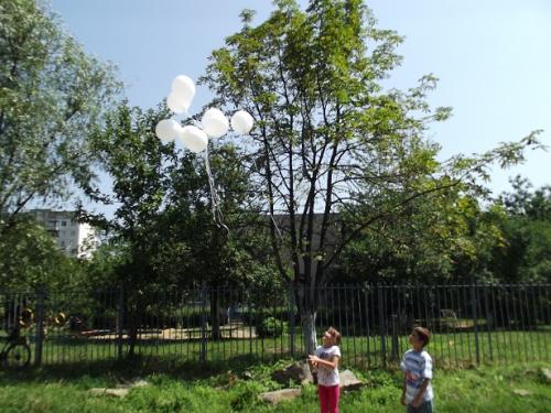 И вот мы уже все готовы к торжественному моменту запускания в небо белых шариков, как символа капель молока ![]()