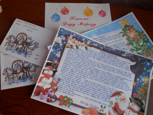 Подготовила для дочки и племянницы письма от Деда Мороза, распечатала конверты. Еще распечатала бланк для написания письма Деду Морозу. Не знаю, как их преподнести. Думаю, что напишем письмо Деду Морозу, положим в морозильник, а на следующий день дочка вместо своего письма в морозилке найдет письмо от Деда Мороза и какой-то сладкий подарок. Возможно, у кого-то будут еще идеи интересные как эти письма передать детям.