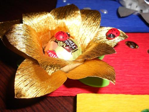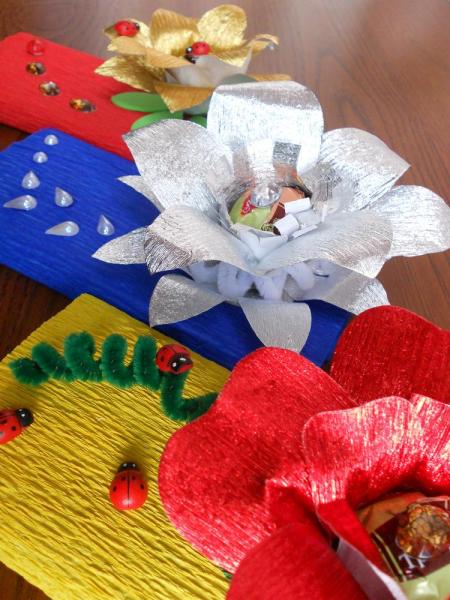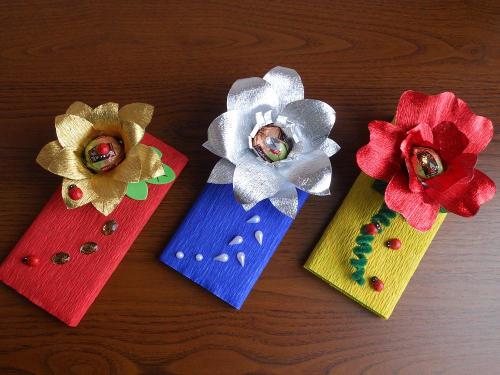 27 сентября - день работников дошкольных учебных заведений. Родительский комитет собирал деньги на подарки. А от себя лично решили подарить такие скромные подарочки: шоколад и конфетка. Вот так их оформила.