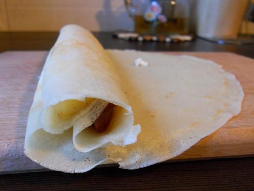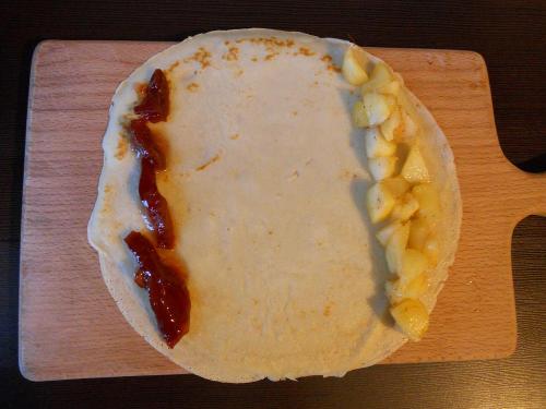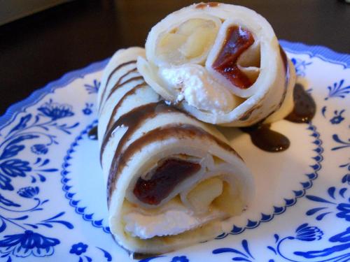 Блин с двойной начинкой положить на блин с творогом и все вместе завернуть