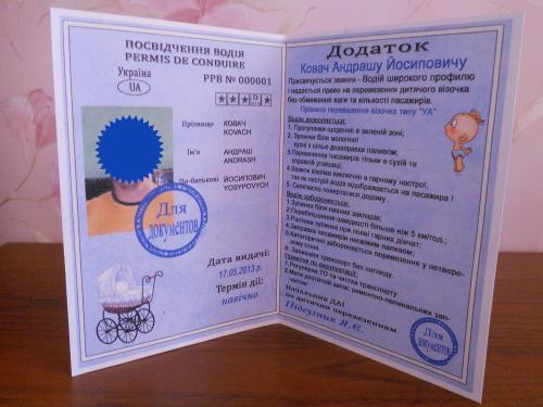У нас праздник! Сегодня сестра родила мальчика. По этому поводу для ее мужа сделала вот такие права.