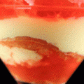 Варимо обидва киселі. У келих (форму), змочену водою і присипану цукром, наливаємо шар молочного киселю і дуже добре охолоджуємо. На застиглий шар молочного киселю наливаємо охолоджнний журавлинний кисіль, який ще не застиг, і дуже добре охолоджуємо. Кількість шарів збільшувати, поки не закінчиться келих (форма).