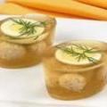 Фарш солимо, додаємо яйце і рослинне масло. Формуємо фрикадельки і варимо їх на пару. Желатин замочуємо в гарячому бульйоні і проціджуємо. У страву наливаємо охолодженого бульйону з розчиненим желатином, кладемо охолоджені фрикадельки, додаємо бульйон, що залишився, і даємо застигнути.
