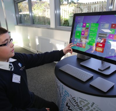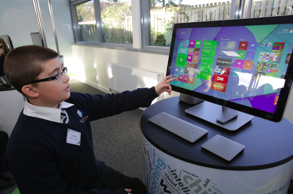 Учень школи імені Джорджа Стівенсона вивчає в лабораторії SOLE систему Windows 8 на подарованому Microsoft комп’ютері