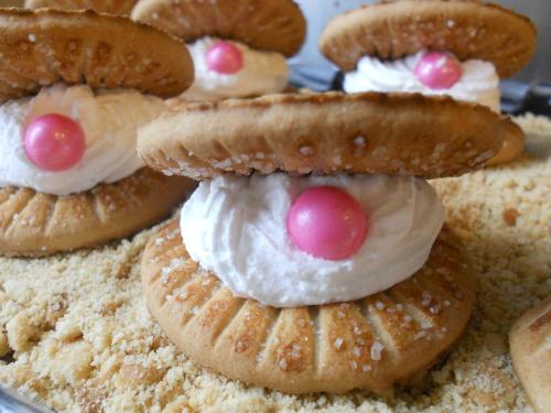 Ракушки из печенья с кремом из маскарпоне и шоколадной жемчужиной