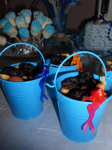 Для каждого гостя подготовила ведро с орешками и изюмом