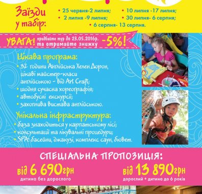До ваших послуг каталог дитячих таборів і дитячих турів зі зручним пошуком таборів та дитячих турів за різними критеріями з інформацією про програми дитячих таборів, вартість путівки, умови перебування та контакти для придбання путівки.