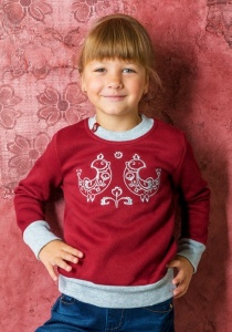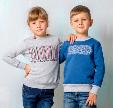 Дитяча лінійка представлена світшотами та футболками з довгим і коротким рукавом. Хлопцям особливо сподобається сірий светр із гордим написом «Super Ukrainian», а дівчаткам - сіро-бордовий, з симпатичними пташками. Якщо ж ваша дитина не байдужа до темного одягу, то вона обов'язково зверне увагу на чорний світшот з піксельним тризубом. Що ж стосується футболок, то різноманітність малюнків вишивки, яскрава палітра кольорів і вибір фасонів викликатиме у батьків та їх маленьких модників бажання придбати всі моделі.