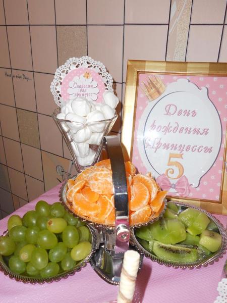 В воскресенье отпраздновали 5тилетие моей принцессы. Такой тортик и сладкий стол для деток я приготовила.