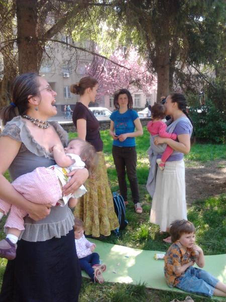 Мы сегодня встречались. Мы - это кормящие, слингоносящие и просто любящие мамы и кормящиеся, носящиеся, ходящие, бегающие, валяющиесянакарематах, катающиесянакачеле, замачивающиештанишкивфонтане дети )))) Спасибо всем, кто пришел, приятно было познакомиться с новыми мамами и новыми ( и новорожденными) детками. Сейчас попробую добавить фотки.