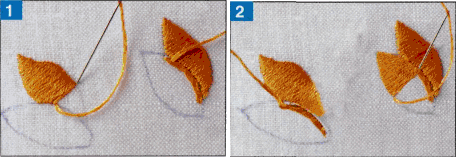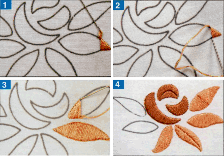 4. Намагайтеся, щоб краї вишивки вийшли рівними.  Зміна напрямку стібків на різних ділянках одного і того ж елемента посилює ефект гри світла і тіні. Використовуючи цю техніку, стібки на стику таких ділянок прокладайте трохи «внахльост».