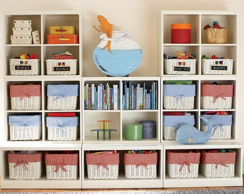 Традиційна дитяча кімната містить величезну корзину, де зберігаються всі іграшки в одній купі. Але діти не можуть гратися іграшками, якщо ті всі знаходяться в одному місці водночас - їх постійно доводиться перекидати у пошуках саме тієї речі, натхнення гратися з якою прийшло в певний момент часу! Звичайно, збирати всі іграшки разом в одну корзину чи великий ящик - швидко і зручно, але таким чином ми ховаємо улюблені речі разом з тими, якими малюк грається рідко, бо вони вже йому набридли.