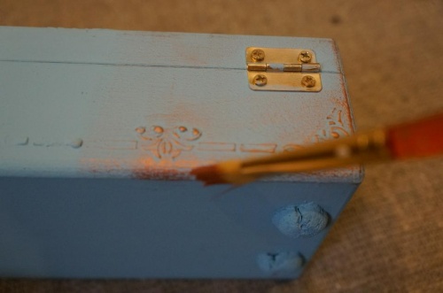 Перед декорированием деревянную шкатулку следует обработать. Для этого вам нужно зашкурить поверхность с помощью наждачной бумаги и прогрунтовать ее. Если так случилось, что на вашем изделии есть небольшие трещинки, нужно сначала их зашпаклевать, а потом уже покрыть грунтовкой. Для обработки вы можете применить художественную грунтовку или акриловую краску.